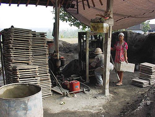 Es gibt wenige Maschinen und damit ist der Anteil körperlicher Arbeit hoch. In dieser Ziegelei wird von 4 bis 15 Uhr gearbeitet, anschließend gehen die Balinesen noch auf Reisfelder arbeiten.