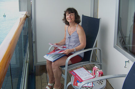 Da unser Stateroom (Außenkabine mit Balkon) sehr gemütlich war, hielten wir uns ab und an auch ganz gern hier auf. Jeden Abend lag die Bordzeitung Funtimes für den nächsten Tag auf dem Bett.