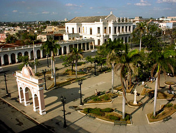 Karibischen Meer. Von einem Turm hatten wir einen schönen Ausblick auf den Hauptplatz von Cienfuegos. Im Hintergrund sieht man das Terra-Theater, das 1889 im neoklassizistischen Stil erbaut wurde. |