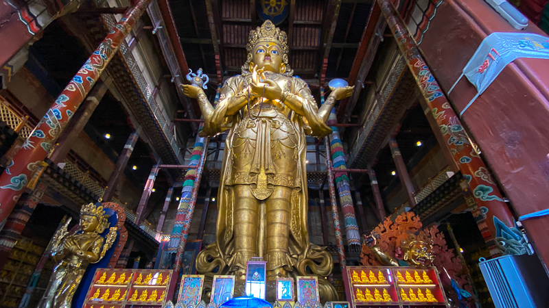 Direkt neben dem Kloster steht der Maidari-Tempel, der mit 42 Metern Höhe der höchste Tempel