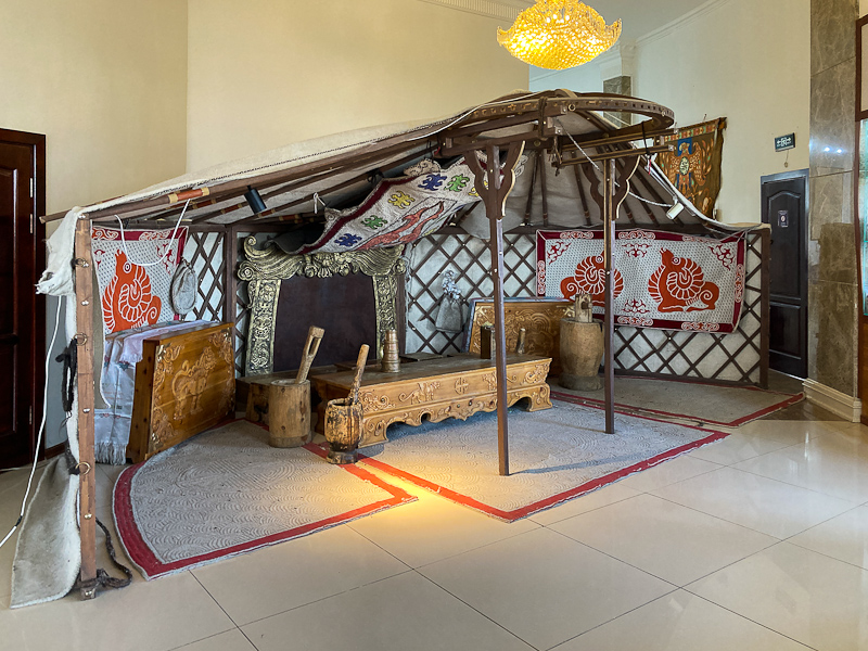 Die übergroße Reiterstuatue Dschingis Khans auf dem 10 Meter hohen Gebäude mit 36 Säulen ist weithin sichtbar. Die aus 250 Tonnen rostfreiem Stahl geschmiedete Statue selbst ist mit 30 Metern die zur Zeit größte Reiterstatue der Welt.