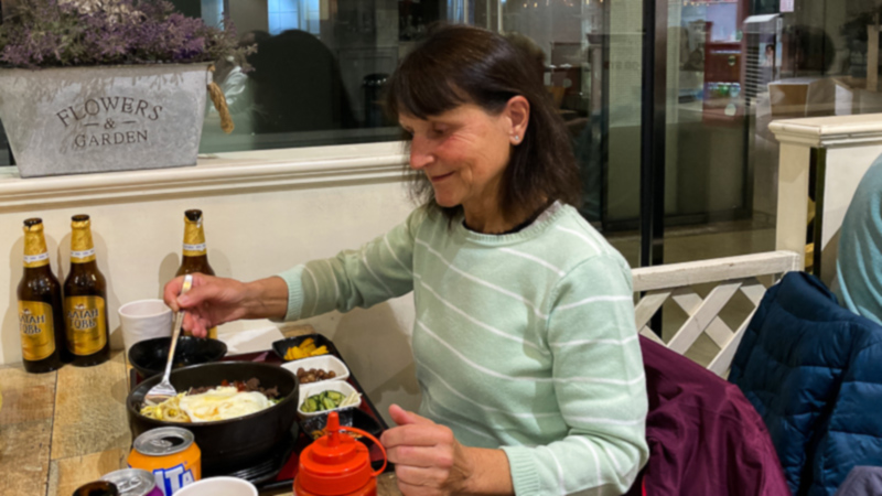 Schließlich aßen wir in einem anderen Teil des Gebäudes, in dem Strom vorhanden war, bei einem Koreaner.