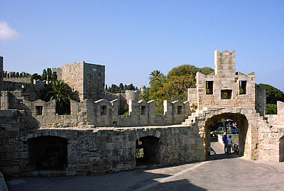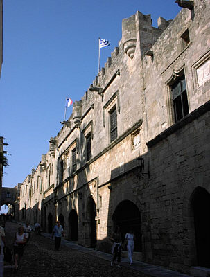 Auf einer Burg über der Altstadt befindet sich der Großmeisterpalast. Er war das Machtzentrum des Johanniterordens. Im Jahre 1309 wurde Rhodos während der Kreuzzüge unter dem Großmeister Foulquet de Villaret erobert und zur größten befestigten Stadt des Mittelmeerraumes ausgebaut. Der Großmeister herrschte ganz wie der Fürst eines souveränen Staates und wurde auf Lebzeiten gewählt.