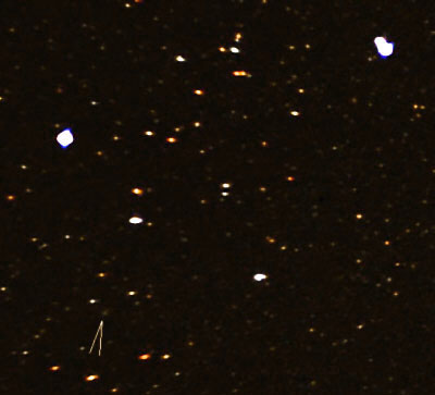 aufgenommen am 14. April 1996 von 20:56 bis 21:06 UT Auffallend ist der Stern Dubhe (im Kasten rechts oben), rosa leuchtend. Im unteren Dateil mit veränderter Gamma-Einstellung ist die Galaxie M51 zu erkennen.