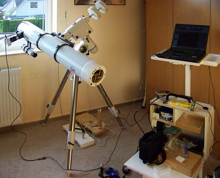 Diesen Venustransit konnte ich in Geesthacht vom Fenster aus gut beobachten. Die schwache Bewölkung störte nicht merklich. Beobachtet habe ich mit dem Newton 150/1200 (TAL2) mit vorgesetzter Sonnenfolie, auf Durchmesser 120 mm reduziert. Die Fotos nahm ich mit der Meade LPI auf. Diese Kamera habe ich etwas umgebaut: Die Leuchtdiode entfernt und das schwarze Gehäuse durch eine helle Blechdose ersetzt. Verwendet habe ich zusätzlich einen Gelbgrün-Filter.