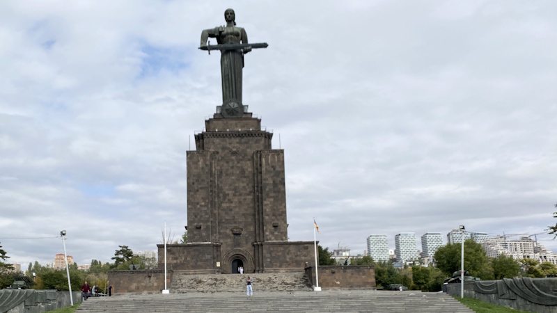 Das 51 m hohe Monument steht auf einem Hügel im Siegespark. Es ist ein Komplex aus Militärmuseum, dem Grabmal des unbekannten Soldaten und der 24 m großen Statue Mutter Armenien. Sie steht auf dem Sockel, in dem sich auf fünf Etagen seit der Stalinzeit das Militärmuseum befindet. In jener Zeit stand auf dem bereits damals begehbaren Sockel die Statue von Stalin, die 1962 abgebaut und durch die heutige ersetzt wurde. Mutter Armenien wird als heroisch wirkende Frau dargestellt, die über das Land wacht. Das Militärmuseum besuchten wir nicht.