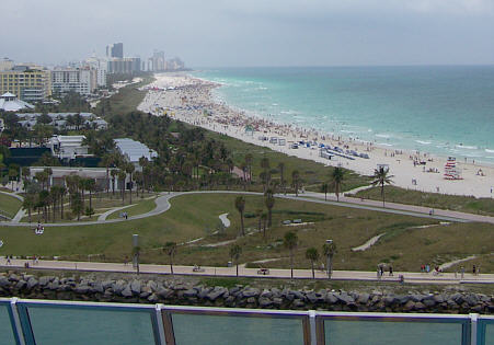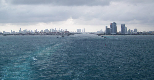 Nach dem Bezug unseres Staterooms 9182 auf dem Lido Deck (Deck 9) und nach einer Einweisung im Deck 3 unterhalb der Rettungsboote verließen wir 16.00 Uhr den Port of Miami, nachdem die Schiffssirene dreimal die Ausfahrt angekündigt hatte. Es war eine tolle Stimmung während der Ausfahrt, die durch Reggaemusik einer karibischen Live Band untermauert wurde. Nach dem Ablegen konnten wir noch lange auf Miami Beach blicken.