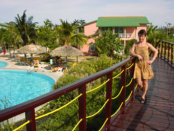 In der Mitte der Hotelanlage befindet sich ein großer Pool, umgeben von Restaurants und Bars, die man über diese Brücke erreichen kann. |