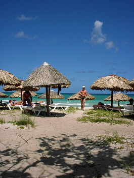 Der helle feinkörnige Sandstrand zieht sich über mehrere Kilometer entlang. Das Meer leuchtet in den Farben blau bis türkis und sieht einfach herrlich aus. Die Wasserqualität ist sehr gut. |