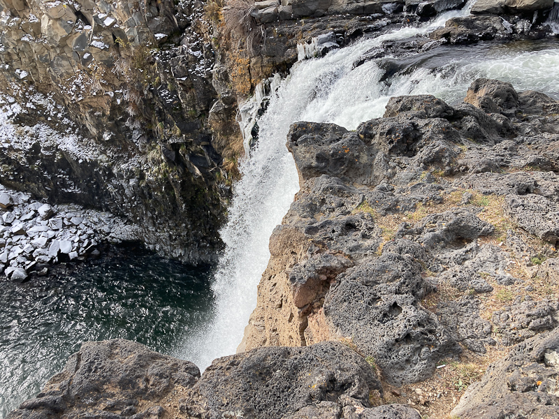 Auf einer Breite von 10 Metern stürzt das Wasser in die Tiefe und wird in einem Kessel aufgefangen. Im Sommer soll man hier baden können. Danach fließt das Wasser im breiten Fluss relativ ruhig weiter.
