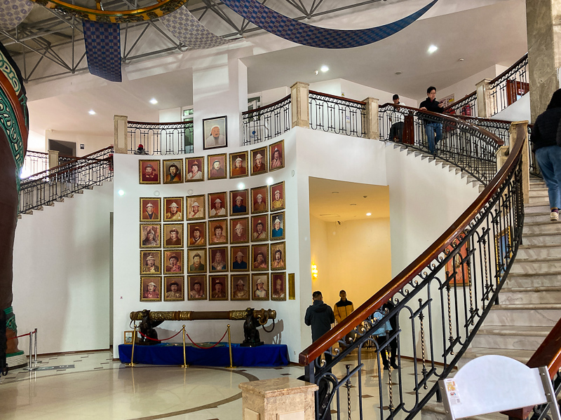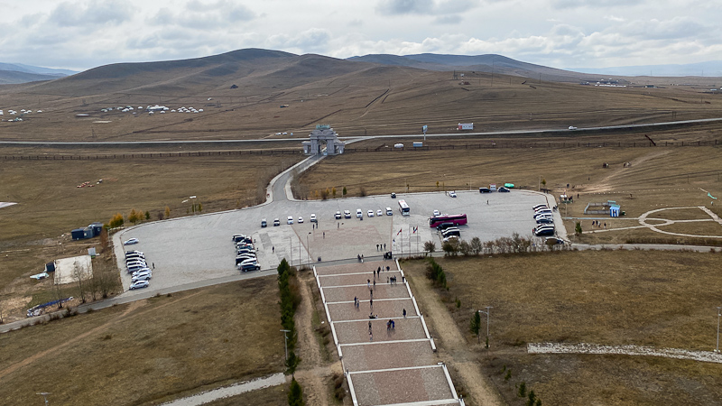 Die übergroße Reiterstuatue Dschingis Khans auf dem 10 Meter hohen Gebäude mit 36 Säulen ist weithin sichtbar. Die aus 250 Tonnen rostfreiem Stahl geschmiedete Statue selbst ist mit 30 Metern die zur Zeit größte Reiterstatue der Welt.