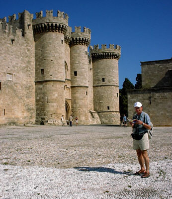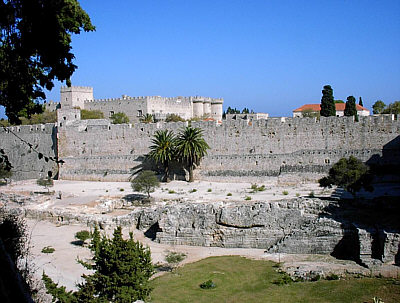 Auf einer Burg über der Altstadt befindet sich der Großmeisterpalast. Er war das Machtzentrum des Johanniterordens. Im Jahre 1309 wurde Rhodos während der Kreuzzüge unter dem Großmeister Foulquet de Villaret erobert und zur größten befestigten Stadt des Mittelmeerraumes ausgebaut. Der Großmeister herrschte ganz wie der Fürst eines souveränen Staates und wurde auf Lebzeiten gewählt.